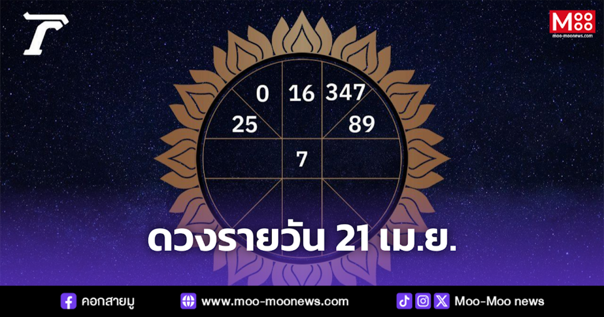 เปิดดวงชะตาวันอังคารที่ 21 เมษายน พ.ศ. 2569 (ขึ้น 5 ค่ำ เดือน 6) ซึ่งถือเป็นวันมงคล เหมาะสำหรับการอุปสมบท การผ่าตัด และการออกรถใหม่