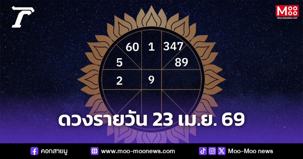 เช็กดวงชะตารายวัน ประจำวันพฤหัสบดีที่ 23 เมษายน พ.ศ.2569 (ขึ้น 7 ค่ำ เดือน 6) ซึ่งถือเป็นวันมงคล เหมาะสำหรับการอุปสมบท การผ่าตัด การออกรถใหม่ และการขึ้นบ้านใหม่