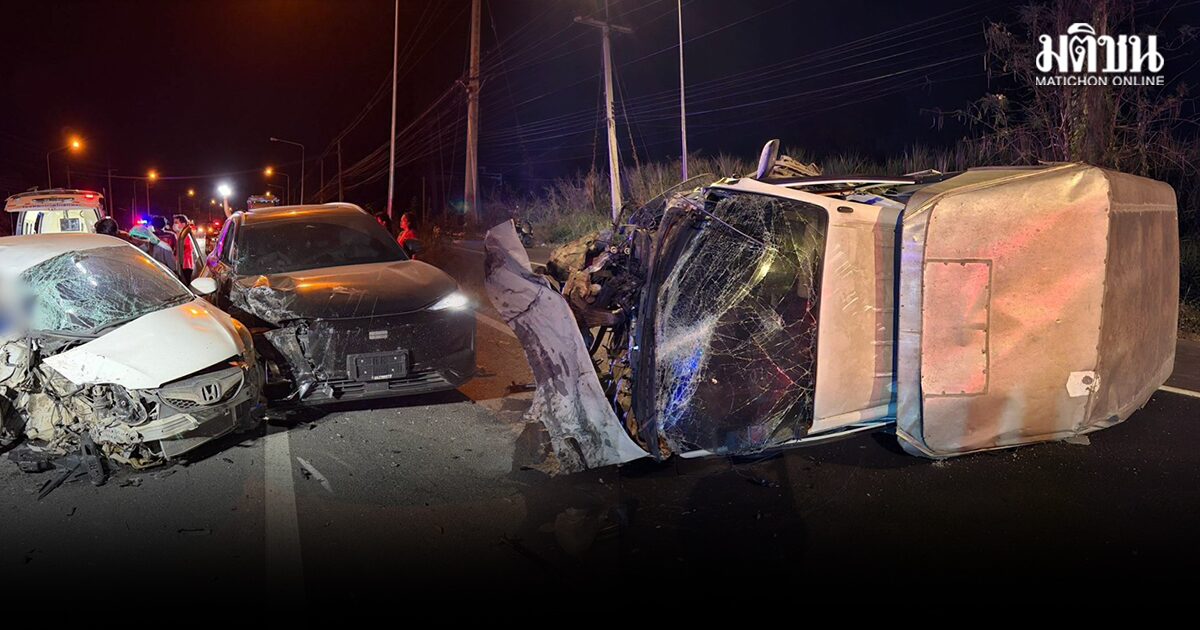 ด่วน! กระบะตู้ทึบ ซิ่งระห่ำ-ชนดะ ก่อนพุ่งอัดเก๋ง ชนรถสามีภรรยาพังยับ เมียเสียชีวิตสลด บาดเจ็บหลายราย