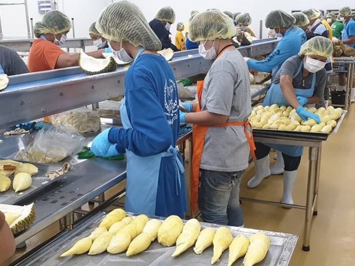 ขณะที่ นายธนภัทร จ่าวินัจ ผู้จัดการสหกรณ์ส่งเสริมธุรกิจภาคการเกษตรจังหวัดตราด จำกัด ต.วังตะเคียน อ.เขาสมิง จ.ตราด กล่าวถึงสถานการณ์ผลไม้จังหวัดตราดในฤดูกาลผลิตปีนี้ โดยเฉพาะทุเรียนจะเริ่มให้ผลผลิตประมาณวันที่ 15 เมษายนนี้เป็นต้นไป และในวันที่ 20 เมษายนจะมีการลงนามสัญญาซื้อขายทุเรียนชะนีเกาะช้าง ซึ่งเป็นสินค้า GI ของจังหวัดตราดกับห้างท็อปซูเปอร์มาร์เก็ตด้วย