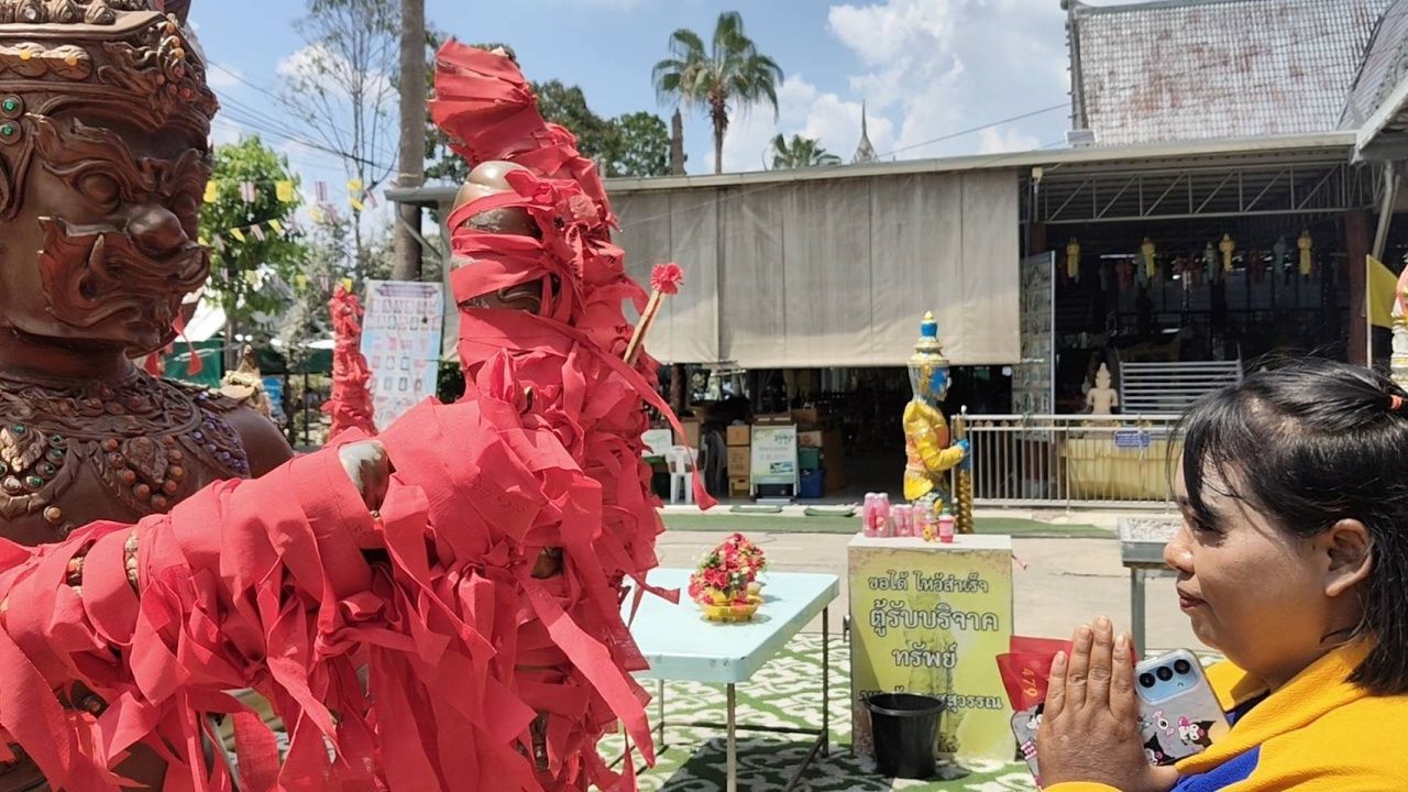 หญิงสมหวังได้งานภายใน 3 วัน นำประทัด 5,000 นัด จุดแก้บน “ท้าวเวสสุวรรณ” วัดดอนใหญ่ ไม่ลืมส่อง “เลขเด็ด” หางประทัดไปลุ้นโชค 16/3/69