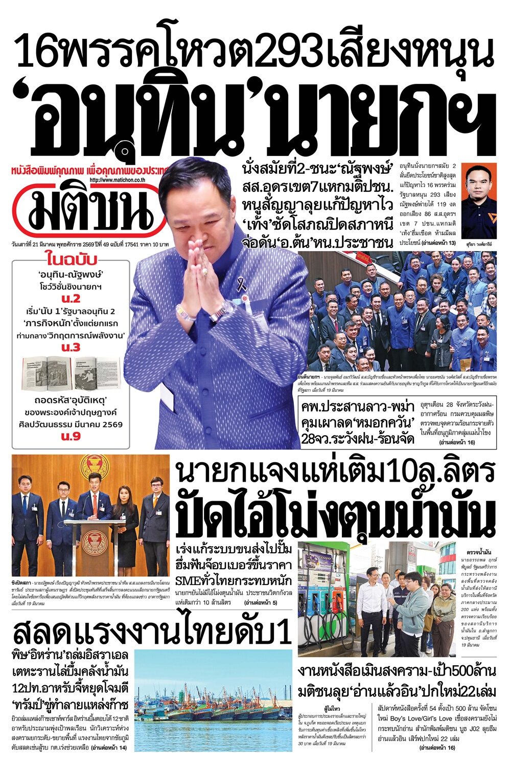#หนา #หนงสอพมพมตชน #วนน