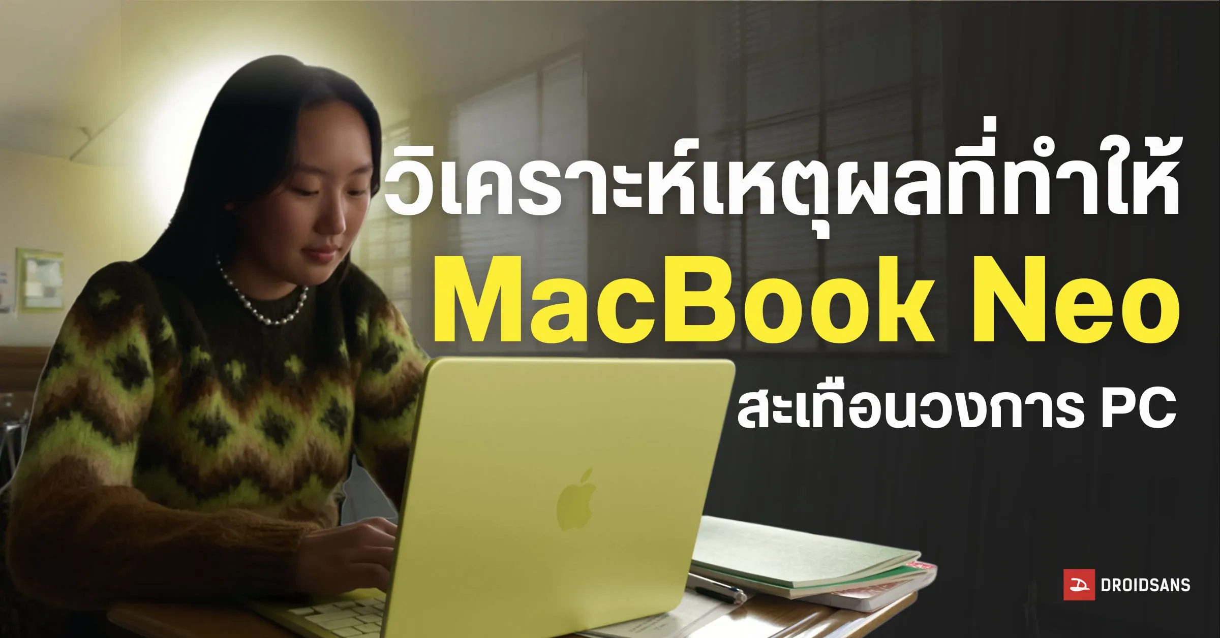 ซึ่ง ณ ปัจจุบันเราต่างก็รู้กันดีว่า หลังจากการเปิดตัว MacBook Neo ออกมาเมื่อไม่กี่สัปดาห์ก่อน สื่อหลายเจ้า รวมทั้งผู้บริหารระดับสูงในวงการไอทีก็เริ่มจับตามองโน้ตบุ๊กราคาประหยัดรุ่นนี้ว่า นี่อาจเป็นตัวพลิกวงการ Notebook / PC ไปเลยก็ได้ แล้วทำไมหลายคนถึงคิดแบบนั้น ? บทความนี้ผมจะลองมาวิเคราะห์ให้ฟังกัน