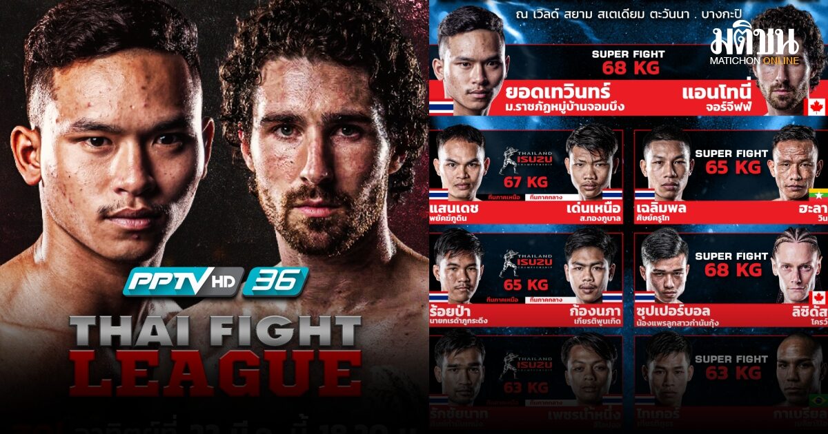 ศึกครั้งนี้บอกเลยว่าครบรส ทั้งความเร็ว แรง และดุดันบนสังเวียนระดับนานาชาติ แฟนมวยห้ามพลาด! ศึก THAI FIGHT LEAGUE ในรายการ “Isuzu Thailand Championship 2026 ติดตามชมถ่ายทอดสดทางพีพีทีวี เอชดี ช่อง 36 ครบทุกคู่ ทุกยก รับประกันความมันส์สะใจแน่นอน! ในวันอาทิตย์ที่ 22 มีนาคม 2569 เวลา 18.20 น. เป็นต้นไป