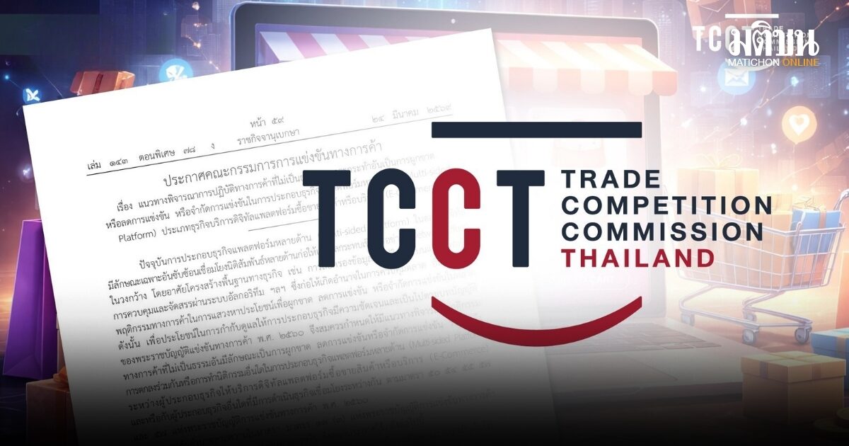 เมื่อวันที่ 25 มีนาคม ผศ.ดร.วิษณุ วงศ์สินศิริกุล เลขาธิการคณะกรรมการการแข่งขันทางการค้า เปิดเผยว่า คณะกรรมการการแข่งขันทางการค้า (กขค.) ได้ออกประกาศเรื่อง แนวทางพิจารณาการปฏิบัติทางการค้าที่ไม่เป็นธรรมและการกระทำอันเป็นการผูกขาด หรือลดการแข่งขัน หรือจำกัดการแข่งขันในการประกอบธุรกิจแพลตฟอร์มหลายด้าน (Multi-sided Platform) ประเภทธุรกิจบริการดิจิทัลแพลตฟอร์มซื้อขายสินค้าหรือบริการ (E-Commerce) หรือที่เรียกว่า “ไกด์ไลน์ E-Commerce” เพื่อใช้กำกับดูแลพฤติกรรมทางการค้าของผู้ประกอบธุรกิจ E-Commerce ซึ่งมีผลใช้บังคับในวันถัดไปหลังจากประกาศในราชกิจจานุเบกษา ซึ่งก็คือตั้งแต่วันที่ 25 มีนาคม 2569 เป็นต้นไป