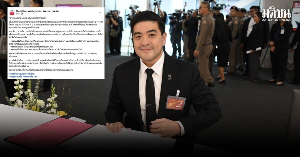 #ธงธรรม #โตโซเชยล #แจงพท.รวมรบ.ยดกลไกพรรคอนดบ #ชเปดโอกาสผลกดนนโยบายถง #ปชช