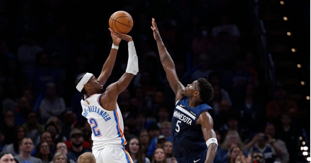 โอกลาโฮมา ซิตี้ ธันเดอร์ ยังรักษาฟอร์มเก่งต่อเนื่อง เอาชนะมินนิโซตา ทิมเบอร์วูล์ฟส์ 116-103 ชนะรวด 8 เกมติดต่อกัน ในการแข่งขันบาสเกตบอลเอ็นบีเอ ที่เพย์คอม เซ็นเตอร์ เมื่อวันที่ 15 มีนาคม