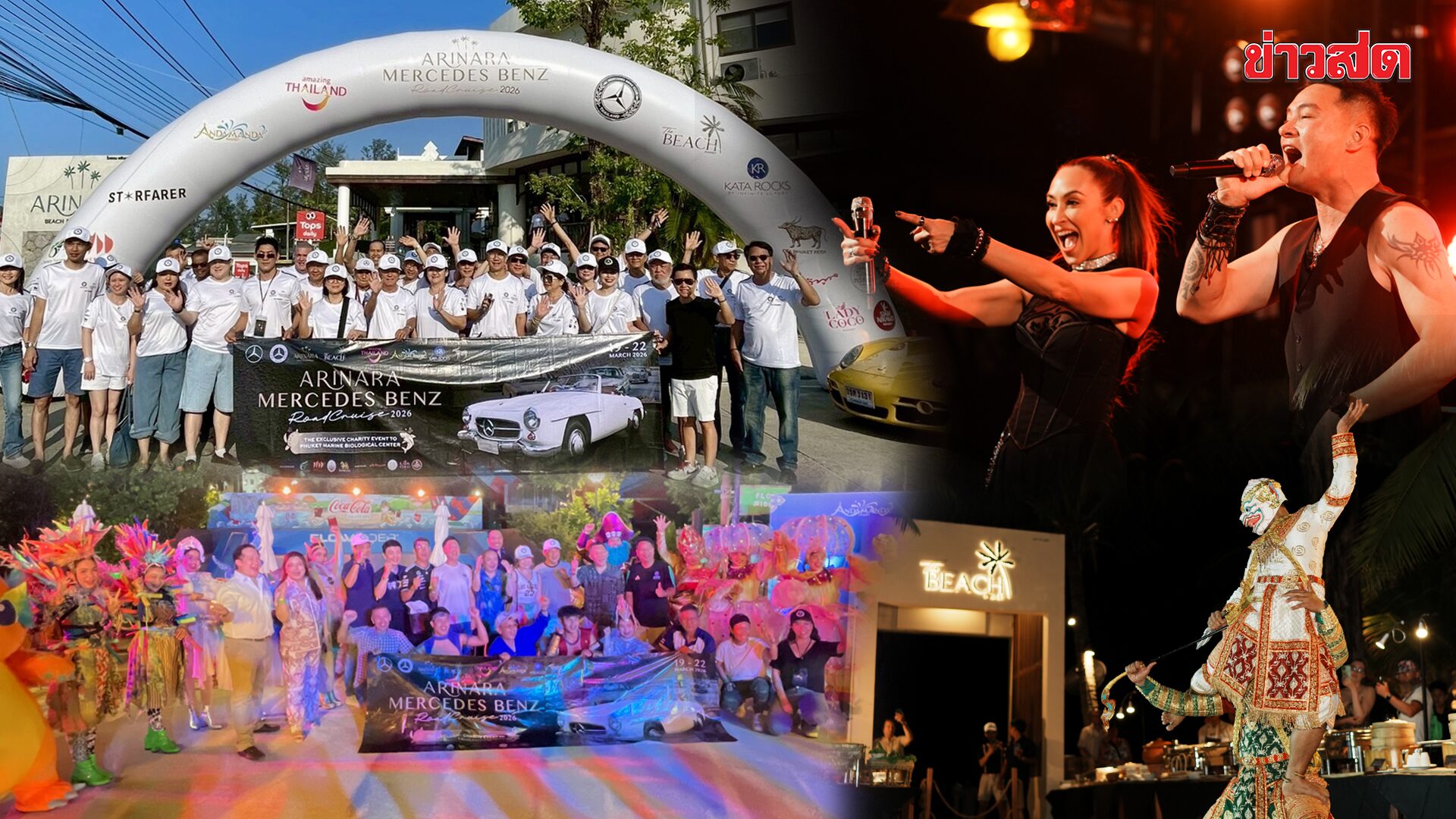 และปิดท้ายอีกหนึ่งไฮไลท์เด็ดกับงานเลี้ยงค่ำคืนส่งท้าย Arinara Mercedes-Benz Road Cruise 2026 ดินเนอร์ที่ The Beach Phuket (Arinara Beach Resort Phuket) พร้อมมินิคอนเสิร์ตจากสองซุปเปอร์สตาร์ยุค 90 แห่งตำนาน ปีเตอร์ คอร์ป ไดเรนดัล และ แคทรียา อิงลิช เสริมทัพด้วยการแสดงพิเศษจาก อันดามันดา ภูเก็ต และ สยามเนรมิต
