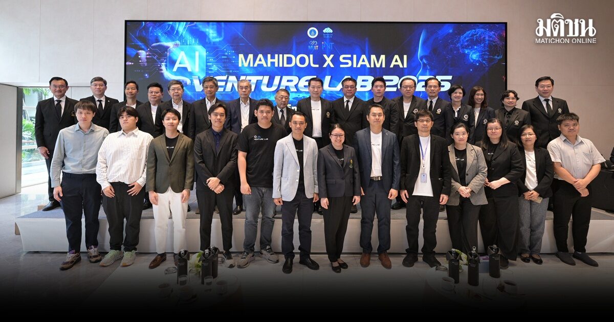Mahidol University ร่วมกับ Siam AI Corporation ประกาศความสำเร็จของโครงการ Mahidol x Siam AI Venture Lab 2025 โครงการบ่มเพาะนวัตกรรมด้านปัญญาประดิษฐ์ (AI) ที่มุ่งสร้าง “Research to Startup Pipeline” สำหรับเทคโนโลยี Deep Tech และ AI Healthcare ของประเทศไทย เพื่อแสดงศักยภาพของนวัตกรรม AI Healthcare ที่พัฒนาขึ้นจากโครงการ พร้อมสะท้อนบทบาทของมหาวิทยาลัยในการขับเคลื่อน AI Innovation Ecosystem ของประเทศไทย โดยโครงการดังกล่าวเปิดรับทีมผู้พัฒนานวัตกรรมทั้งจากนักวิจัยภายในมหาวิทยาลัยมหิดล และบริษัท Startup ไทย โดยมีทีมที่มีศักยภาพในการพัฒนาเทคโนโลยี AI สู่การใช้งานจริงในอุตสาหกรรมสุขภาพผ่านการคัดเลือกเข้าสู่รอบนำเสนอผลงานรอบสุดท้าย จำนวน 6 ทีม จากทีมสมัครเข้าร่วมโครงการทั้งหมด 9 ทีม