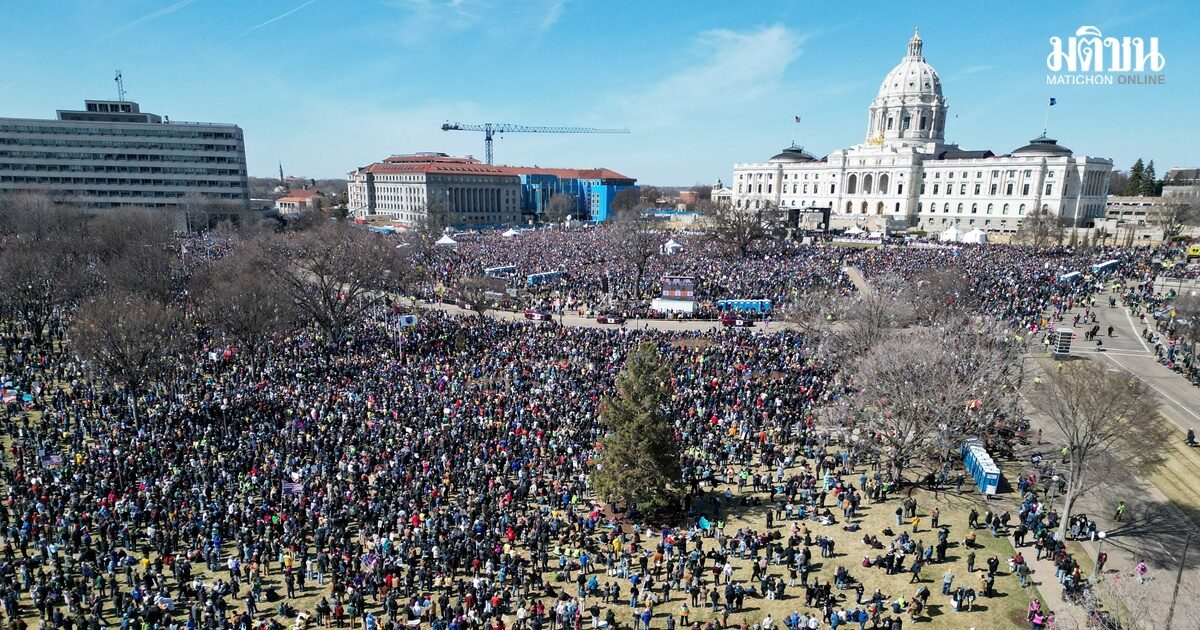 ทิม วอลซ์ ผู้ว่าการรัฐมินนิโซตา ผู้ได้รับการเสนอชื่อเป็นรองประธานาธิบดีจากพรรคเดโมแครตในปี 2024 กล่าวกับฝูงชนว่า การต่อต้านทรัมป์และนโยบายของเขาทำให้พวกเขาเป็น “หัวใจและจิตวิญญาณ” ของทุกสิ่งที่ดีงามในสหรัฐอเมริกา