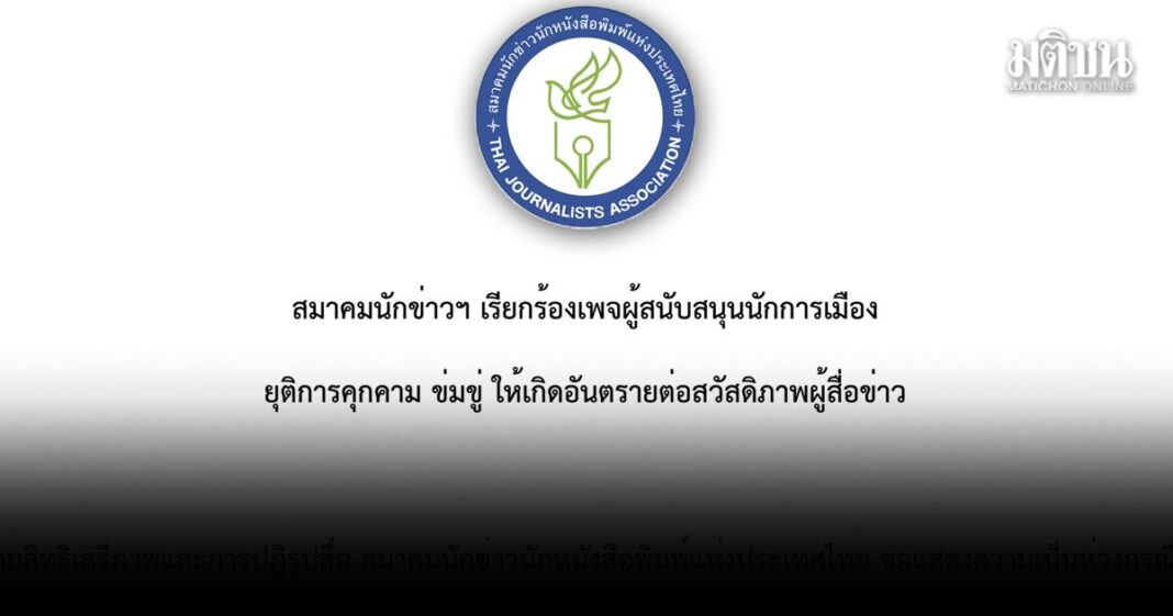 สมาคมนักข่าวฯ เรียกร้องเพจผู้สนับสนุนนักการเมืองยุติคุกคาม ข่มขู่ ให้เกิดอันตรายต่อสวัสดิภาพผู้สื่อข่าว
