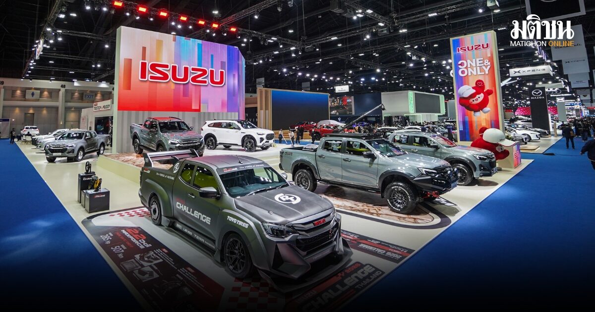 โดยอีซูซุได้นำรถมาจัดแสดงรวมทั้งสิ้น 15 คัน ทั้งรุ่นมาตรฐานยอดนิยมครบทุกไลน์อัพ จำนวน 10 คัน นำโดยรถปิกอัพอีซูซุ ดีแมคซ์ และรถยนต์นั่งอเนกประสงค์มิว-เอ็กซ์ รวมถึงอีกหนึ่งทางเลือกให้กับลูกค้าชาวไทยอย่างรถปิกอัพไฟฟ้า “อีซูซุ ดีแมคซ์ EV” ที่ได้นำมาจำหน่ายครั้งแรกภายในงาน และเพิ่มความสปอร์ตเร้าใจกับรถตกแต่งพิเศษหลากสไตล์จำนวน 5 คัน ที่ออกแบบมาเพื่อสร้างแรงบันดาลใจและสะกดทุกสายตา นำทัพโดย New! ISUZU V-CROSS 4×4 “THE ONE & ONLY” และ MU-X “THE NEXT PEAK” 4WD ครั้งแรกกับเครื่องยนต์ 2.2 Ddi MAXFORCE ในระบบขับเคลื่อนสี่ล้อ ที่เปิดตัวเมื่อปลายเดือนกุมภาพันธ์มาโชว์ภายในงาน พร้อมด้วยไฮไลต์สำคัญอย่างรถปิกอัพอีซูซุดีแมคซ์ รถแข่งต้นแบบที่จะใช้ในรายการ “ISUZU CHALLENGE THAILAND 2026” และ ISUZU V-CROSS 4×4 เครื่องยนต์ 2.2 Ddi MAXFORCE ที่อีซูซุได้ร่วมมือกับ WILD ผู้ผลิตชิ้นส่วนชื่อดังของไทยในการออกแบบอุปกรณ์ตกแต่งพิเศษรอบคันโดยเฉพาะ และรถยนต์นั่งอเนกประสงค์ MU-X “THE NEXT PEAK” 2.2 Ddi MAXFORCE รุ่น RS สี Dolomite White Pearl มาตกแต่งเพิ่มความดุดันขั้นสุดในสไตล์ Top Secret SPL ครั้งแรกของโลกกับการเผยโฉมโปรเจกต์ “TOP Secret The First PPV” และ รถยนต์นั่งอเนกประสงค์ MU-X “THE NEXT PEAK” 2.2 Ddi MAXFORCE รุ่น Active สี Dolomite White Pearl ที่ร่วมมือกับ Bangkok Hot Rod Custom Show ผู้จัดงานประกวด Custom Car ที่ใหญ่ที่สุดในประเทศไทย มาพลิกโฉมสะกดทุกสายตาด้วยชุดแต่งพิเศษคอนเซปต์ “Premium Tough”