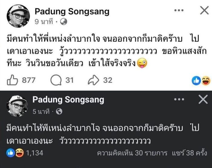 “มีคนทำให้พี่เหน่งลำบากใจ จนออกจาก ก็มาดิคร้าบ ไปเดาเอาเองนะ วู้ววววววววววววววววววววว ขอหิวแสงสักทีนะ วินวินขอวันเดียว เข้าไส้จริงจริง”