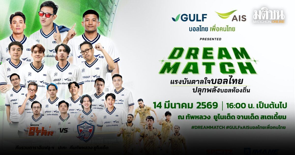 GULF-AIS สานต่อเจตนารมณ์ “บอลไทยเพื่อคนไทย” เดินหน้ายกระดับวงการฟุตบอลรากหญ้า จัดแมตช์พิเศษ “Dream Match แรงบันดาลใจบอลไทย ปลุกพลังบอลท้องถิ่น” สร้างปรากฏการณ์ครั้งยิ่งใหญ่ที่นำทีมรวมดาราอินฟลูเอ็นเซอร์ชื่อดังมาฟาดแข้งกับสโมสรฟุตบอลท้องถิ่นที่ครองใจคนในพื้นที่ หวังสร้างแรงบันดาลใจและปลุกกระแสฟุตบอลชุมชนให้กลับมาคึกคัก พร้อมเปลี่ยนรายได้จากการจำหน่ายบัตรเป็นอุปกรณ์การเรียนมอบให้โรงเรียนในพื้นที่