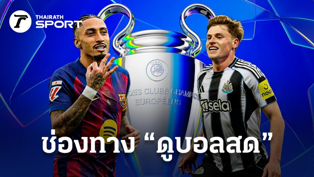 LIVE ถ่ายทอดสด บาร์เซโลน่า พบ นิวคาสเซิ่ล ดูบอลสด บอลวันนี้ 00.45 น. UCL รอบ 16 ทีม เลก 2