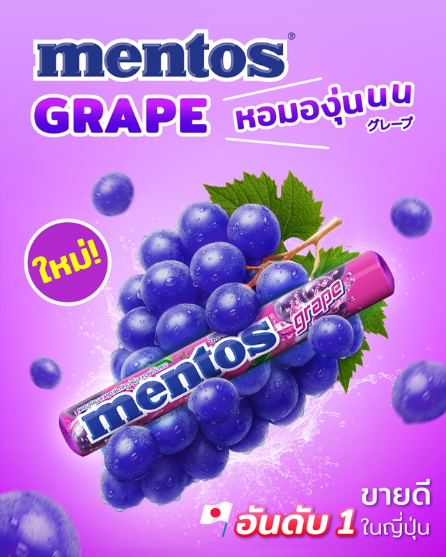 ใหม่! Mentos Grape ลูกอมรสองุ่น ขายดีอันดับ 1 ในญี่ปุ่น