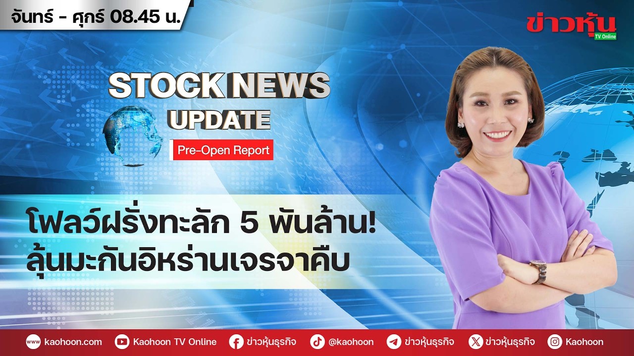 ติดตามประเด็นข่าวหน้าหนึ่งเช้านี้ ในรายการ Stock News Update: Pre-Open Report โดย อารียานันท์ สัทธรรมสกุล และภัชชาร์ ภัทรเดชาธรรม
