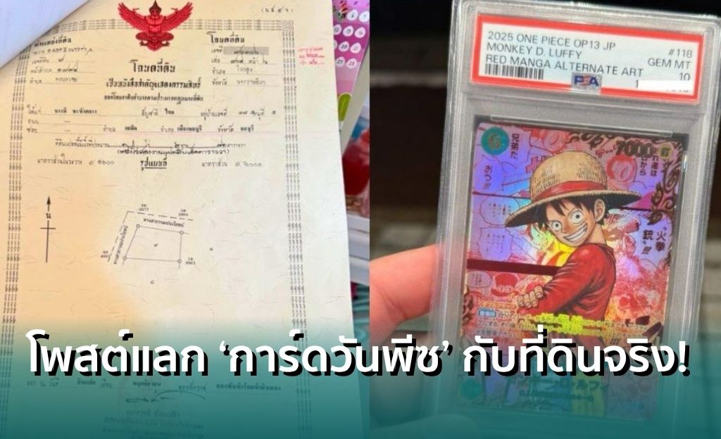 หนุ่มไทยรายหนึ่งโพสต์ในกลุ่ม ONE PIECE Market Thailand ประกาศเอาที่ดินในจ.นครราชสีมา (โคราช) มูลค่า 2 ล้านบาท มาแลกกับการ์ดวันพีซระดับแรร์ ข่าวนี้กลายเป็นไวรัลในวงการนักสะสมทันที และสะท้อนให้เห็นว่าการ์ดสะสมในไทยตอนนี้ไม่ใช่แค่ของเล่นอีกต่อไปแล้ว