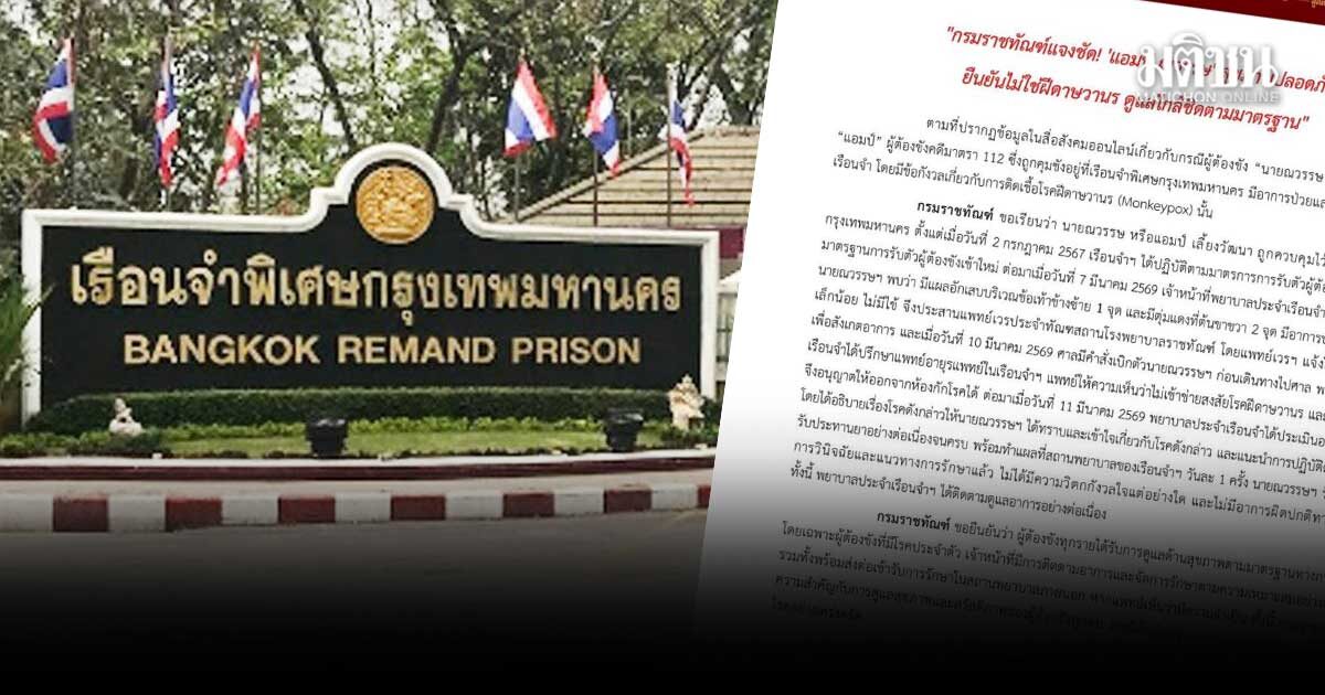 #ราชทณฑ #แจง #แอมป #ผตองขง #ไมไดปวยฝดาษวานร #เลกกกโรคแลว