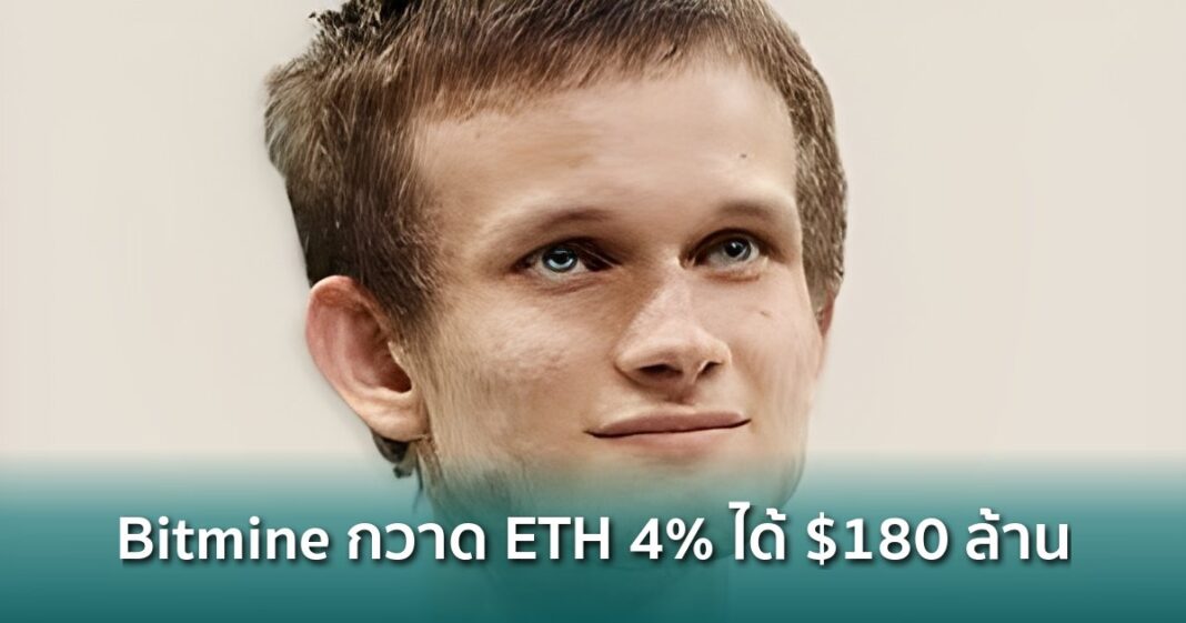 อัปเดตล่าสุด Bitmine กวาด ETH ไปแล้วเกือบ 4% ของทั้งโลก ปั๊มรายได้ staking กว่า $180 ล้านต่อปี