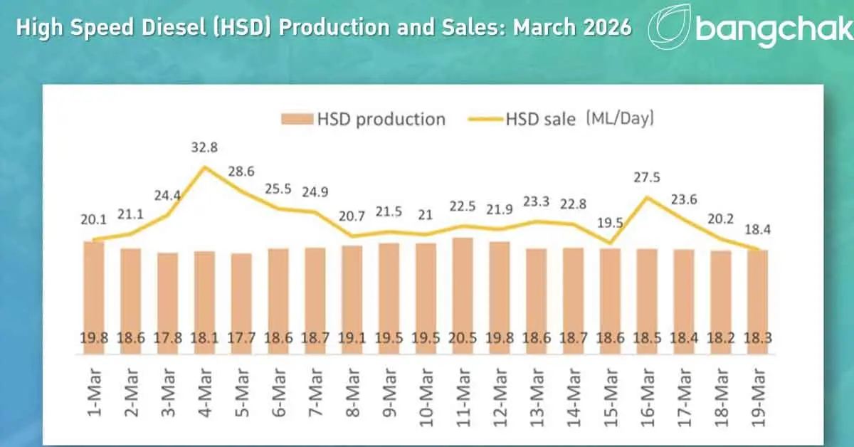 จากสถานการณ์ความไม่สงบในภูมิภาคตะวันออกกลาง บริษัท บางจาก คอร์ปอเรชั่น จำกัด (มหาชน) ได้ดำเนินการอย่างเต็มที่ทั้งด้านการจัดหา การกลั่น และการกระจายน้ำมัน โดยเพิ่มระดับการกลั่นน้ำมันอย่างต่อเนื่องตลอดช่วง 3 สัปดาห์ที่ผ่านมา มีการกลั่นรวมประมาณ 290,000 บาร์เรลต่อวัน หรือ 110% ของกำลังการผลิตติดตั้ง หรือคิดเป็นน้ำมันดีเซลประมาณ 19 ล้านลิตรต่อวัน ขณะเดียวกัน ความต้องการใช้น้ำมันในภาพรวมของประเทศเพิ่มขึ้นอย่างรวดเร็ว โดยยอดจำหน่ายในบางช่วงสูงกว่าระดับการผลิต บริษัทฯ จึงเร่งนำน้ำมันออกจากโรงกลั่นและกระจายไปยังพื้นที่ต่าง ๆ ทั่วประเทศอย่างเต็มที่ โดยให้ความสำคัญกับการจัดส่งไปยังสถานีบริการเป็นลำดับแรก พร้อมมีการรายงานปริมาณการผลิตและปริมาณน้ำมันสำรองต่อหน่วยงานที่เกี่ยวข้องอย่างสม่ำเสมอ และติดตามสถานการณ์อย่างใกล้ชิด อย่างไรก็ดี จากความต้องการที่เพิ่มขึ้นประมาณร้อยละ 30 ส่งผลให้สถานีบริการบางแห่งอาจไม่สามารถรับและหมุนเวียนน้ำมันได้ทันในบางช่วงเวลา