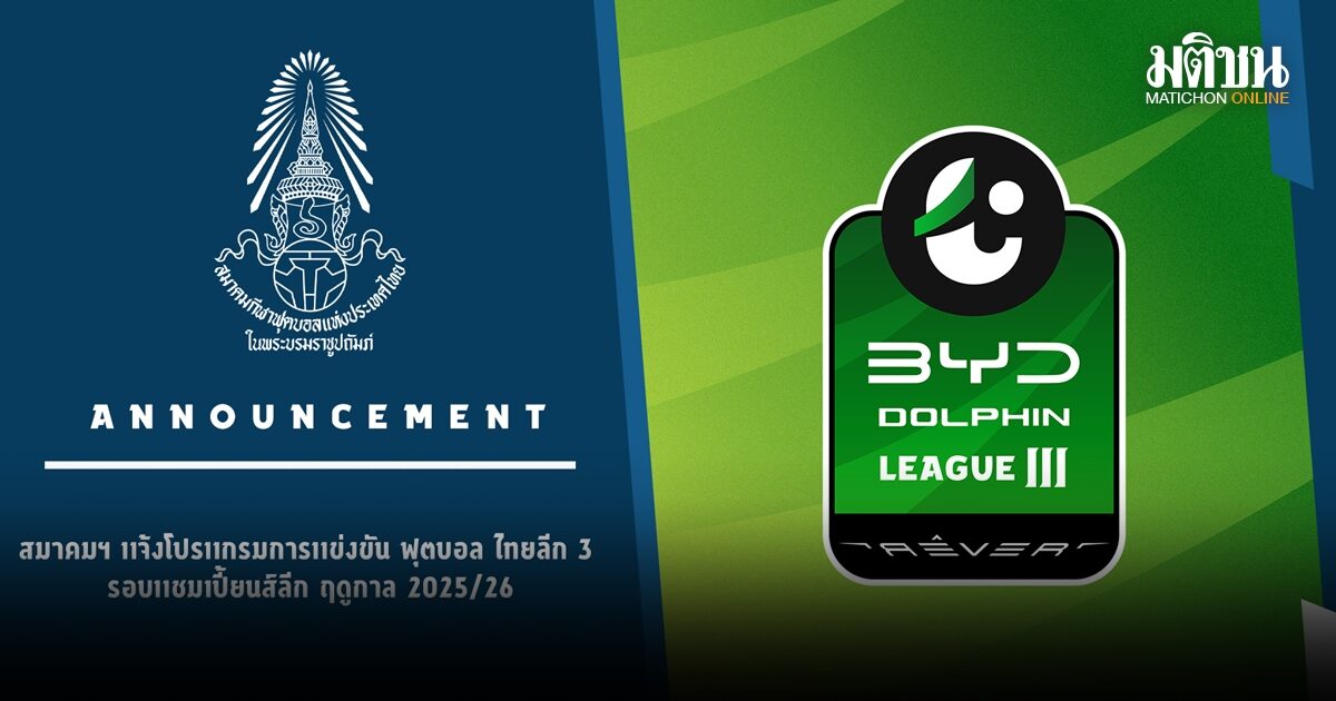 สมาคมฯ แจ้งโปรแกรมการแข่งขัน ฟุตบอล ไทยลีก 3 รอบแชมเปี้ยนส์ลีก ฤดูกาล 2025/26