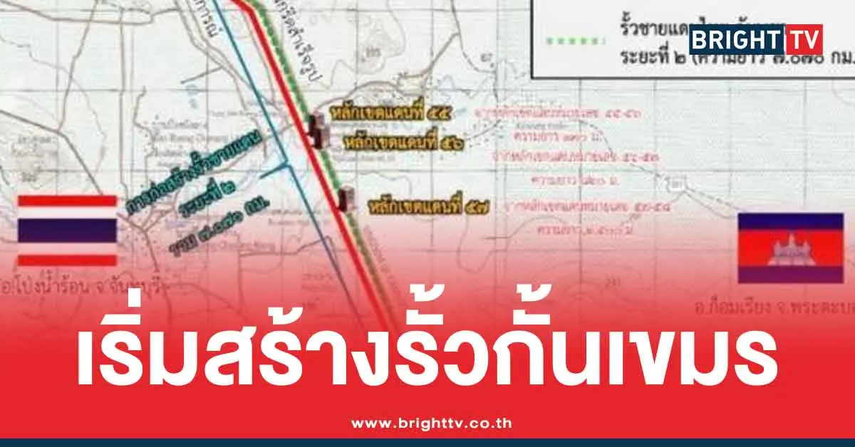 กองทัพไทย แจ้งคืบหน้า สร้างรั้วชายแดนไทย-กัมพูชา นำร่องจุดแรก อำเภอโป่งน้ำร้อน รั้วกั้นชายแดนเขมรถาวร ยาว 1,310 เมตร