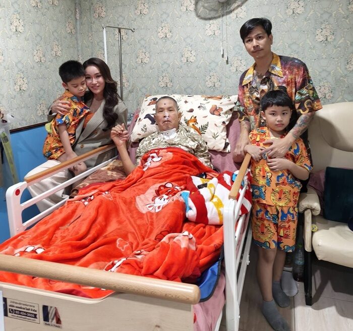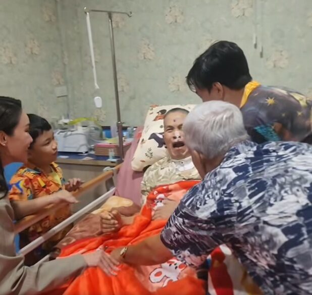 โดยคลิปขณะตลกและพิธีกรสาว ชมพู่ ก่อนบ่าย เดินทางมาพร้อมกับลูกๆ และสามี รวมทั้งคุณพ่อของสาวชมพู่ด้วยซึ่งได้โผเข้าไปสวมกอดตลกอาวุโสส่งกำลังใจ