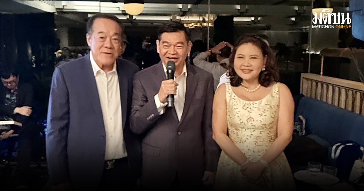 ร่วมยินดี – สุเทพ รุ่งวิทยนันท์ รองประธานสภาวัฒนธรรมไทย-จีนและส่งเสริมความสัมพันธ์ และรพีพรรณเหลืองอร่ามรัตน์ เพื่อนร่วมรุ่นหลักสูตรผู้บริหารกระบวนการยุติธรรมระดับสูง (บยส.) ของสำนักงานศาลยุติธรรม รุ่นที่ 27 แสดงความยินดี วัชรินทร์ ภาณุรัตน์ อธิบดีอัยการสำนักงานการสอบสวน หลังได้รับการโหวตจากเพื่อนร่วมรุ่นเป็นประธานรุ่น บยส.27 ที่ รร.แมนดาริน โอเรียนเต็ล กรุงเทพ เมื่อเร็วๆ นี้