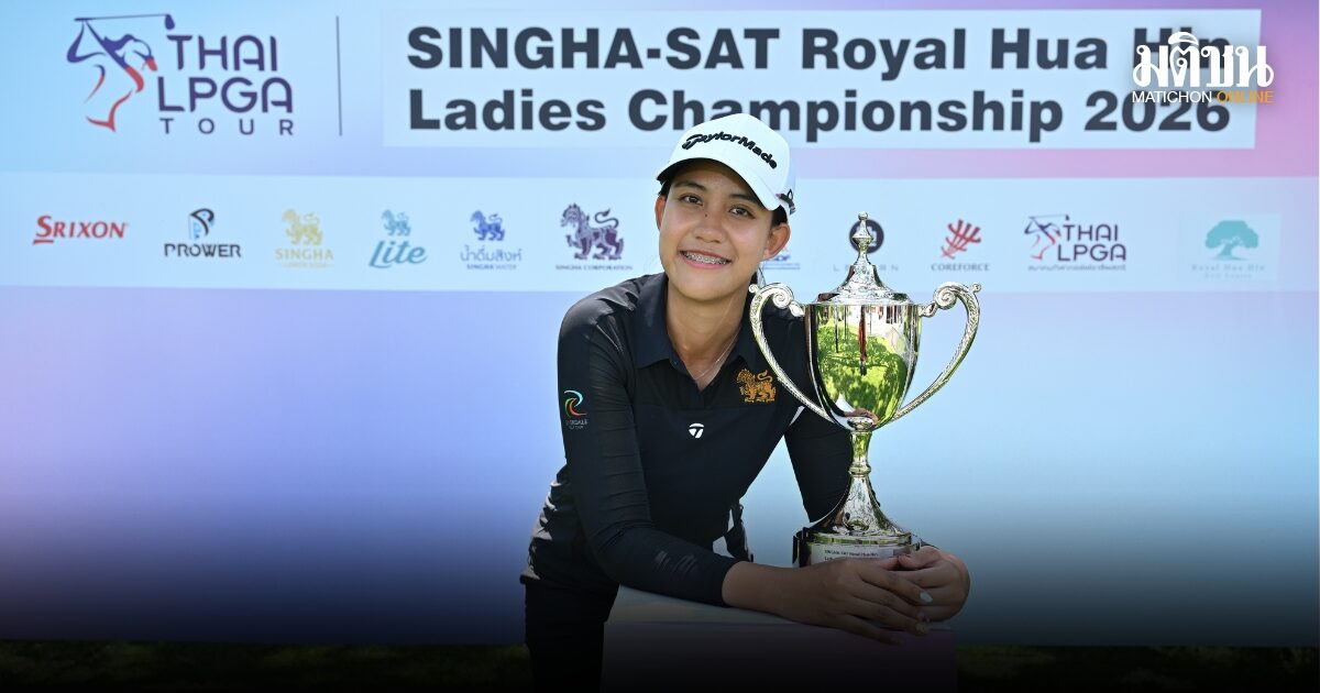 “โปรน้ำผึ้ง” นวพร สุนทรียภาส โปรวัย 20 ปี เก็บได้อีก 1 อันเดอร์พาร์ 71 สกอร์รวมสามวัน 2 อันเดอร์พาร์ 214 คว้าแชมป์เปิดฤดูกาล ไทยแอลพีจีเอ ทัวร์ 2026 “สิงห์-เอสเอที รอยัล หัวหิน เลดี้ส์ แชมเปียนชิพ” ชิงเงินรางวัล 1.5 ล้านบาท ที่สนามกอล์ฟหลวงหัวหิน จ.ประจวบคีรีขันธ์ เมื่อวันที่ 22 มีนาคม