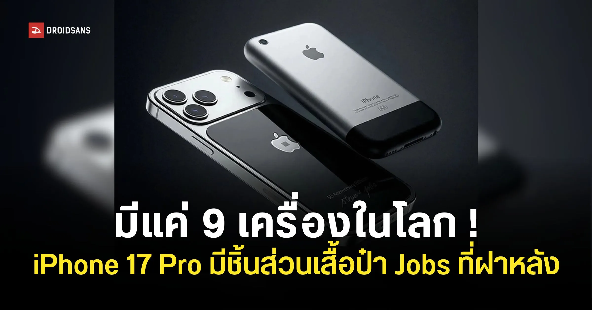 มีแค่ 9 เครื่องในโลกเท่านั้น iPhone 17 Pro Jobs Edition ที่ออกแบบและดีไซน์โดย Caviar เพื่อฉลองครบรอบในวาระ 50 ปี Apple โดยมาพร้อมกับจุดเด่นแหวกแนวไม่เหมือนใครอย่าง ‘ดีไซน์ฝาหลังที่มีชิ้นส่วนเสื้อของ Steve Jobs ฝังปิดผนึกอยู่ด้านใน’