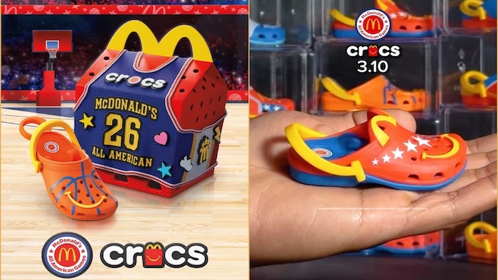แบรนด์ฟาสต์ฟู้ด McDonald’s ร่วมมือกับแบรนด์รองเท้า Crocs ปล่อย Happy Meal รุ่นลิมิเต็ดเอดิชัน มาพร้อมของเล่นสะสมเป็นมินิ Crocs Clog พวงกุญแจ ทั้งหมด 6 แบบ กระตุ้นทราฟฟิกในร้าน McDonald’s ที่ร่วมรายการในสหรัฐอเมริกา ตั้งแต่วันที่ 10 มีนาคม 2026
